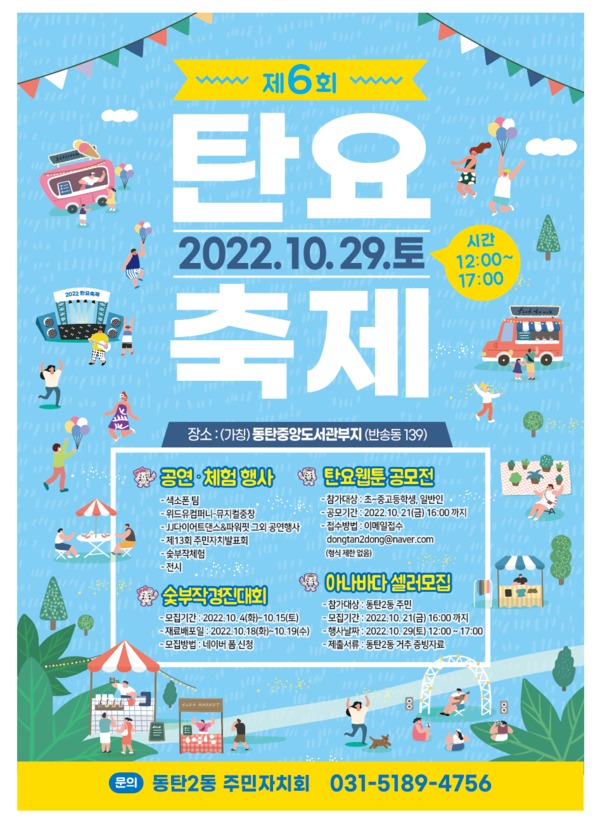 [경기뉴스탑(화성)=전순애 기자]화성시 동탄 2동 주민자치회가 오는 29일 반송동 139번지 동탄중앙도서관 예정부지에서 ‘제6회 동탄2동 탄요축제’를 개최한다.