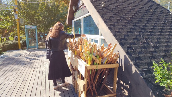 광교산 등산안내소 앞에 비치된 지팡이(사진=수원시 제공)