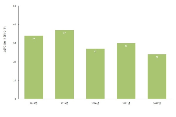 그동안 2018년 34일, 2019년 37일, 2020년 27일, 2021년 30일이 발령됐는데 올해는 최근 5년 이래 발령 일수가 가장 적었다. 2018~2022년 5년 동안 평균 32일 발령했다.