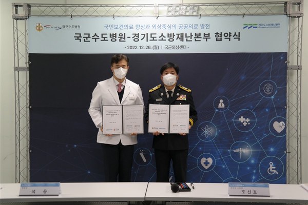 경기도 소방재난본부는 지난 26일 오후 성남 소재 국군수도병원 국군외상센터에서 조선호 도 소방재난본부장, 석웅 국군수도병원장, 김남렬 국군외상센터장 등이 참석한 가운데 국군수도병원과 업무협약(MOU)을 체결했다.