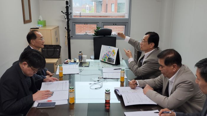 이현재 시장이 5일 대광위 이성해 위원장을 만나 지난 2월 만남 이후 수석대교 추가 진행내용을 설명하며 하남시 신도시 교통문제 현안에 대한 적극적인 검토를 재차 요청하고 있다. (사진[=하남시 제공]