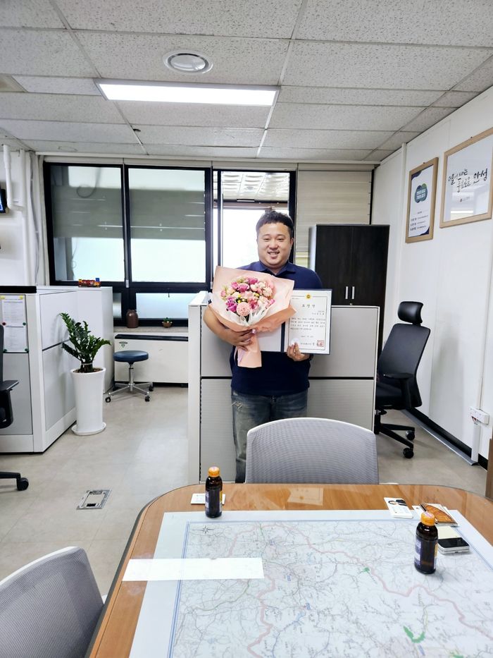 안성시 경제도시국 건설관리과 기반시설팀 송은호(토목, 9급) 주무관이 지난 7일 지역사회 발전에 기여한 공로를 인정 받아 경기도의회 의장 표창을 전수 받았다.(사진=안성시 제공)