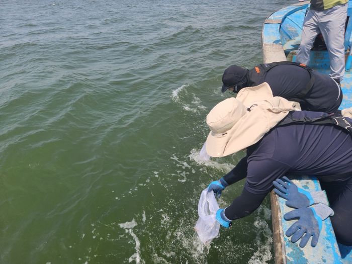 [경기뉴스탑(시흥)=육영미 기자]시흥시는 지난 15일 오이도 앞 해상에 경기도해양수산자원연구소(이하, 연구소)에서 보급 받은 어린 주꾸미 2만 마리를 방류했다.