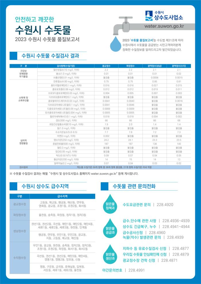 ‘2023 수원시 수돗물 품질보고서’ 요약서(사진=수원시 제공)