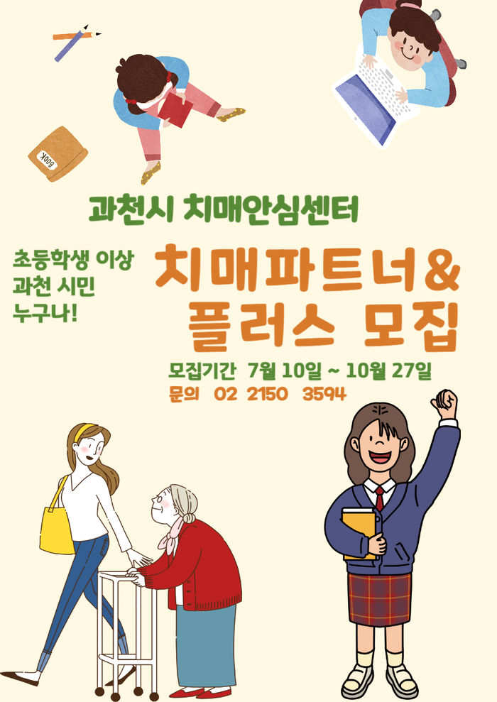 치매파트너와 관련한 상세 내용은 과천시 보건소 치매안심센터(02-2150-3594)로 문의하면 된다.
