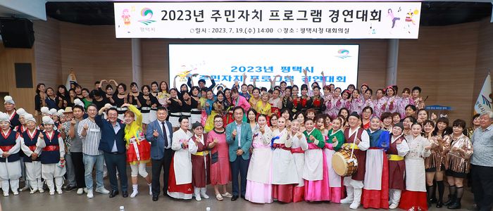 [경기뉴스탑(평택)=전순애 기자]평택시는 지난 19일 평택시청 대회의실에서 ‘2023년 평택시 주민자치프로그램 경연대회’를 개최했다. 이번 경연대회는 읍·면·동 주민자치센터 대표 8개 팀인 고덕동(라인댄스), 비전1동(난타), 비전2동(라인댄스), 세교동(라인댄스), 오성면(고고장구), 청북읍(민요교실), 통복동(난타), 포승읍(사물놀이)이 출전하여 열띤 경연을 펼쳤다.