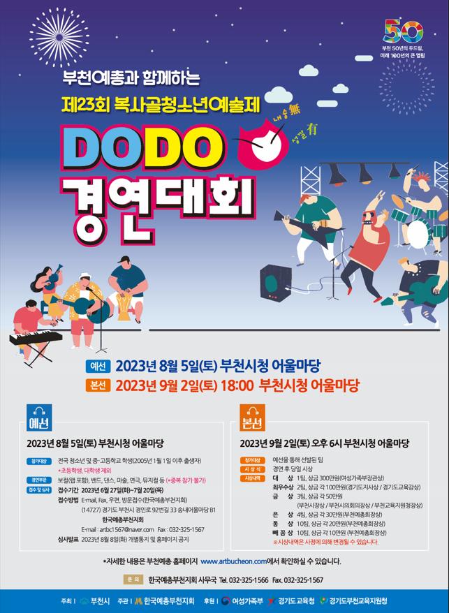 경연대회에 앞서 오전 11시부터 페이스페인팅, 포토존, 비즈팔찌 만들기 등 다양한 체험 부스인 ‘DoDo한 공간’을 운영한다. 오후 3시부터는 장르에 상관없이 청소년들의 끼를 뽐낼 수 있는 페스티벌 ‘DoDo한 프린지 공연’이 펼쳐질 예정이다.