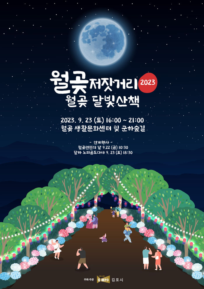 이번 축제는 그간 진행했던 저잣거리 축제의 틀에서 벗어나 ‘월곶 달빛산책, 저잣거리의 밤을 걷다!’ 라는 야행 콘셉트로 기획됐으며, 화려한 야간조명 및 빛 조형물과 월곶의 역사가 한데 어우러져 군하숲길 내 설치된다. 이러한 야간경관시설은 축제 당일 뿐만 아니라 고향을 방문한 귀성객들이 즐길 수 있도록 추석연휴 기간을 포함한 9.22.(금)~10.1.(일)까지 운영될 예정이다.