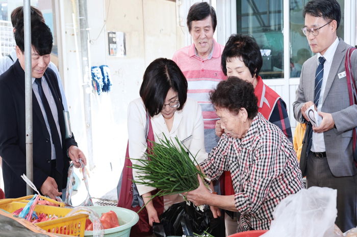 [경기뉴스탑(안성)=전순애 기자]김보라 안성시장이 민족 고유의 명절인 추석을 맞아 지난 22일 전통시장 소비 촉진 및 지역경제 활성화를 위한 전통시장 장보기 행사를 가졌다.