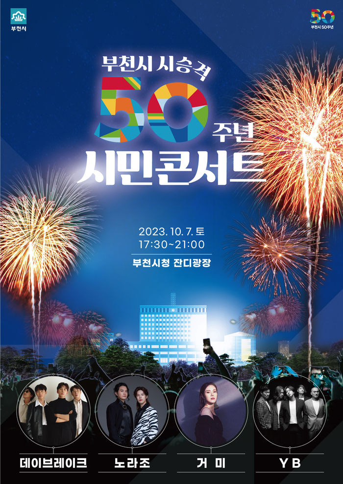 부천시는 1973년 ‘시’로 승격되어 올해 50주년을 맞은 특별한 해인 만큼, 주인공인 시민을 위한 특별한 행사를 마련했다. 대중음악과 지역 문화예술이 어우러진 다채롭고 풍성한 시민화합 문화 콘서트로 멋진 가을밤을 선사한다는 계획이다.