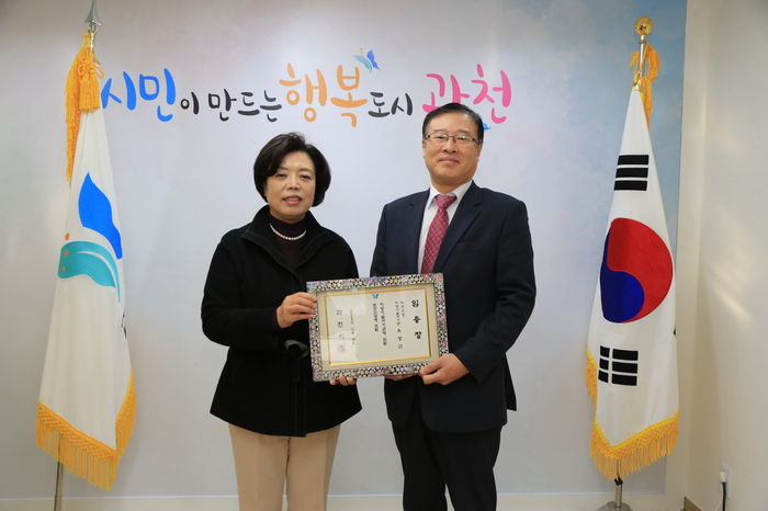 과천시 오상근 보건소장 임명(좌 신계용 과천시장, 우 오상근 과천시 보건소장)(사진=과천시 제공)