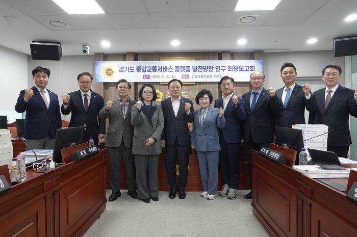 [경기뉴스탑(수원)=육영미 기자]경기도의회 건설교통위원회 연구단체(회장 김종배 위원장)는 11월 27일(월) 경기도의회 건설교통위원회 회의실에서 「경기도 통합교통서비스 플랫폼 발전방안 연구」에 대한 정책 연구용역 최종보고회를 개최했다.