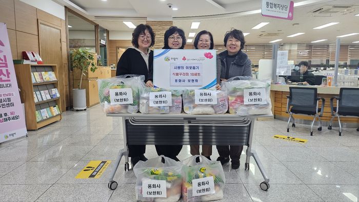 [경기뉴스탑(의왕)=장동근 기자]의왕시 내손1동에 소재한 용화사의 봉사모임 ‘보현회’(회장 김윤주)에서 지난 6일 떡국떡, 미역 등 8종으로 구성된 식품 꾸러미 10세트를 내손1동주민센터에 기탁했다.