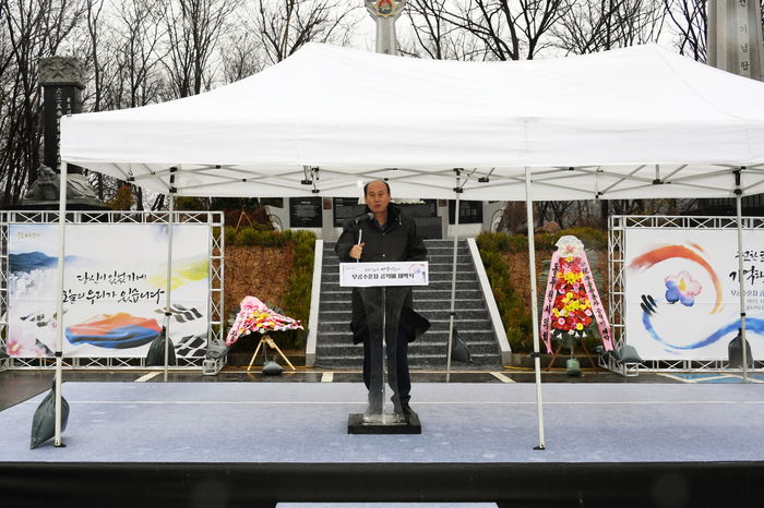 박형덕 동두천시장은 기념사에서 “조국 수호와 세계 평화를 위해 6·25전쟁과 월남전에 나서서 투철한 국가관과 시대적 사명감으로 공훈을 세우고 국가 안보 발전에 기여한 368명의 영웅의 이름을 공적비에 새겼다.”라면서 “무공수훈자를 비롯한 국가유공자 여러분의 거룩한 희생과 헌신에 깊이 감사드리며 자리를 함께하신 여러분 모두의 앞날에 희망과 행복이 가득하길 기원한다.”라고 전했다.