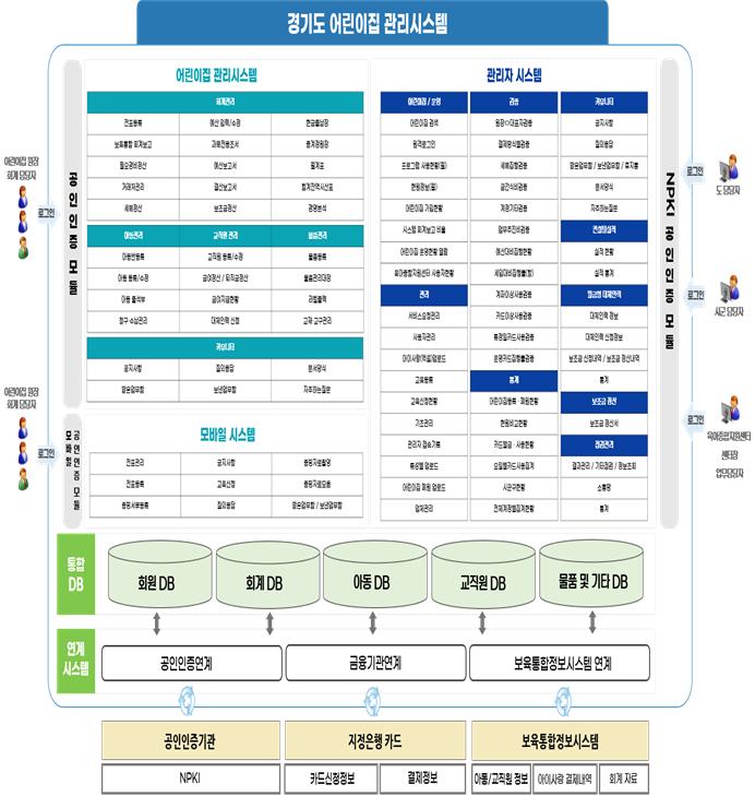 경기도는 어린이집 운영비 사용에 대한 공공성과 투명성을 높이기 위해 마련한 ‘경기도 어린이집 회계관리 선진화 사업’ 계획에 따라 2017년 어린이집을 위한 회계관리시스템인 ‘경기도 어린이집 관리시스템’을 보급했다.